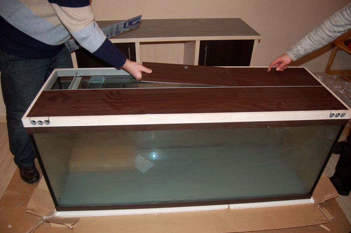 Обзор доставки и подъёма прямоугольного аквариума на 1000 литров с тумбой.