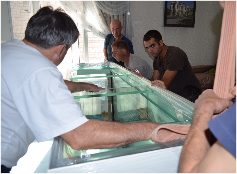 Для наших бойцов привычное дело доставлять тяжёлые аквариумы весом 350-600 кг и более.