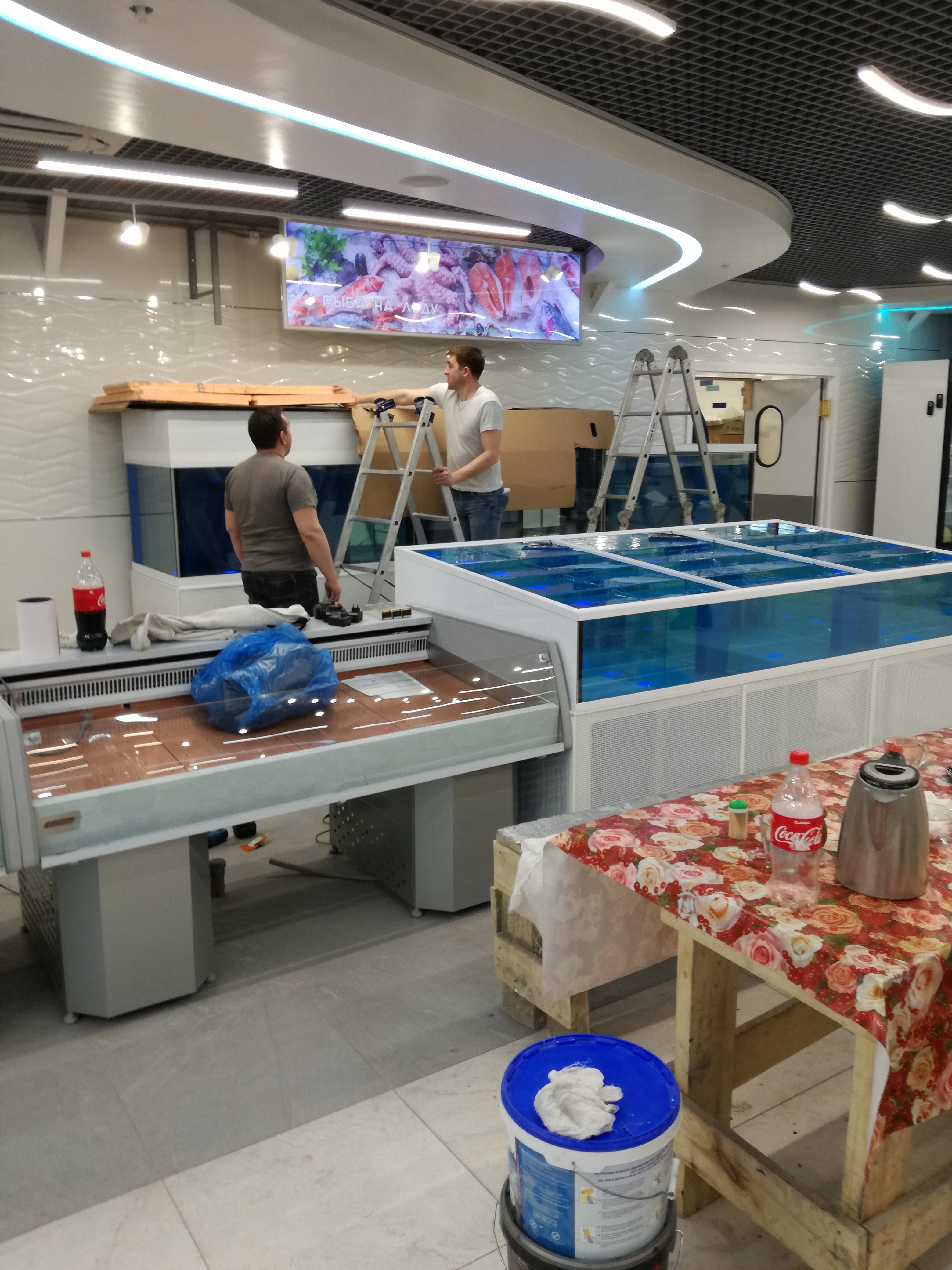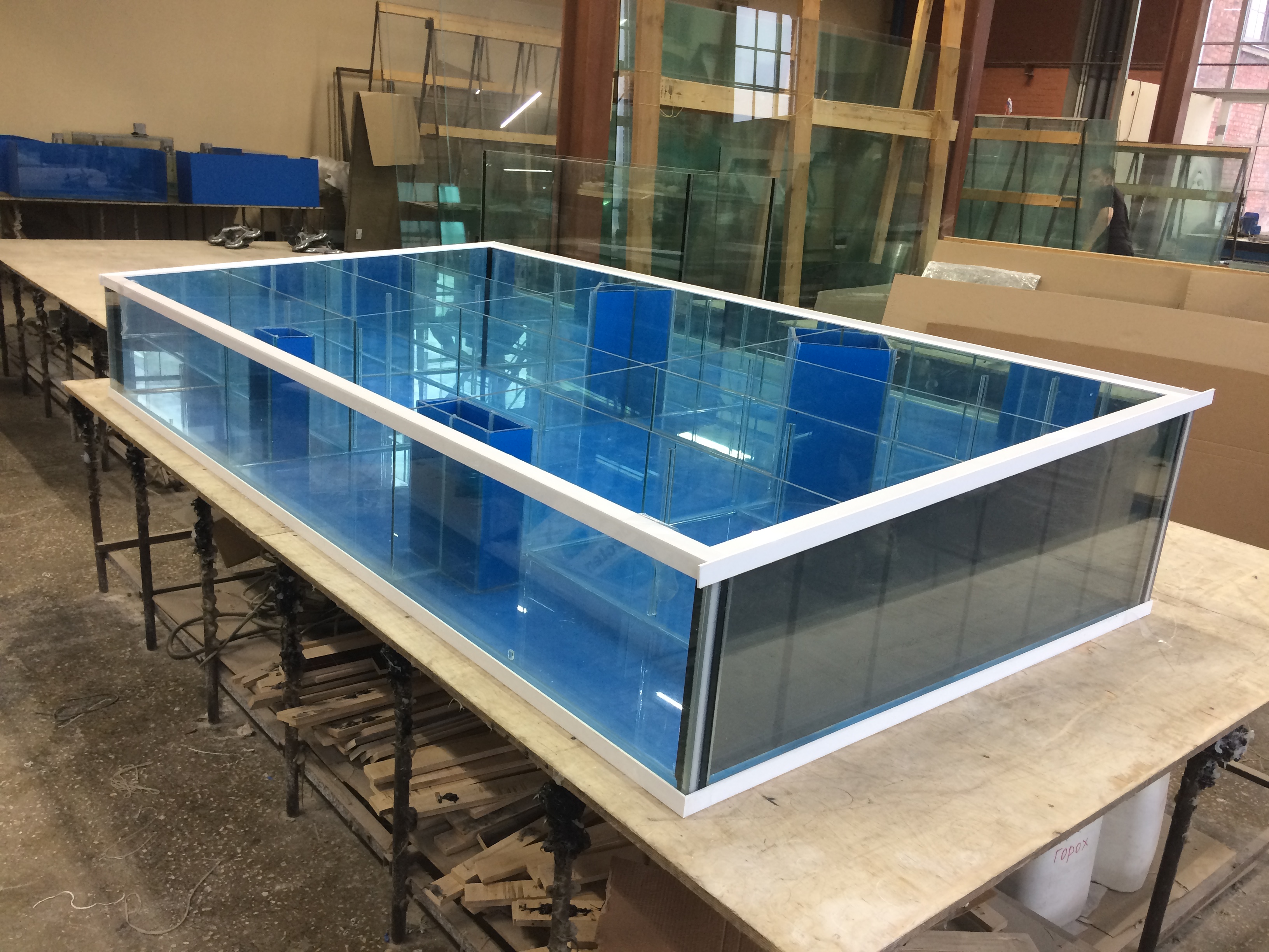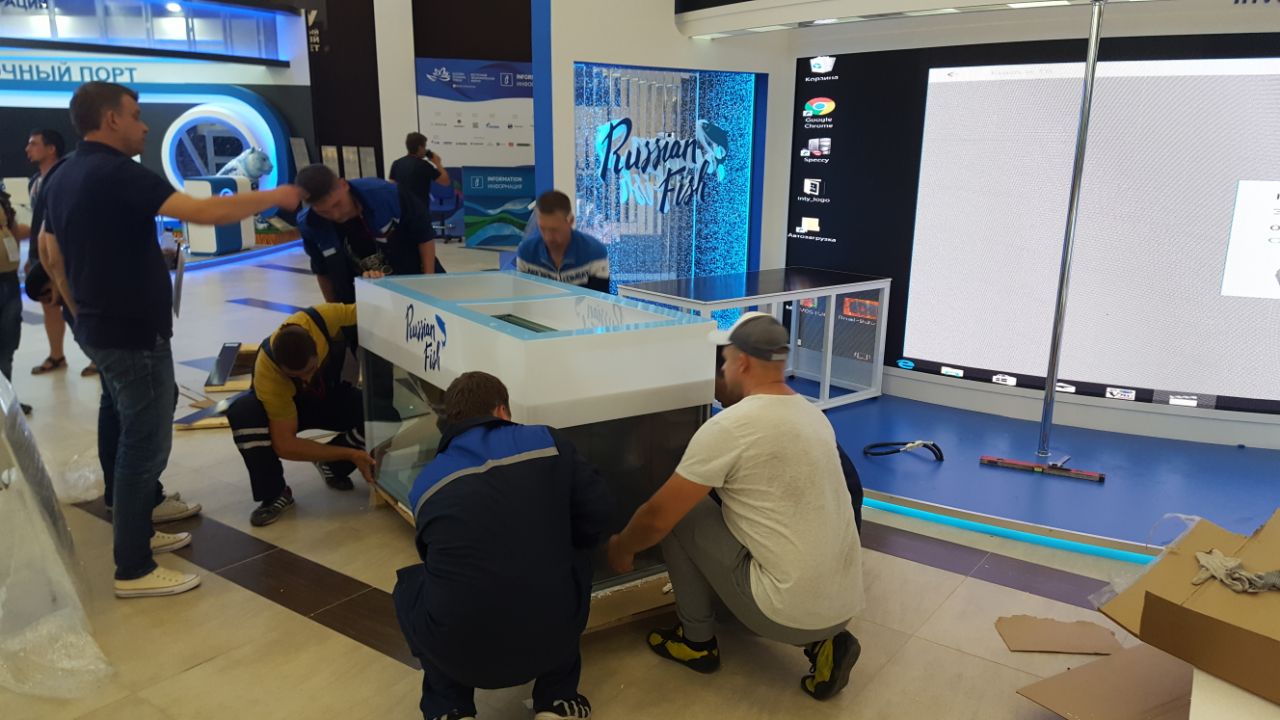 Обзор доставки прямоугольного аквариума витрины для содержания морепродуктов на 1300 литров с тумбой.