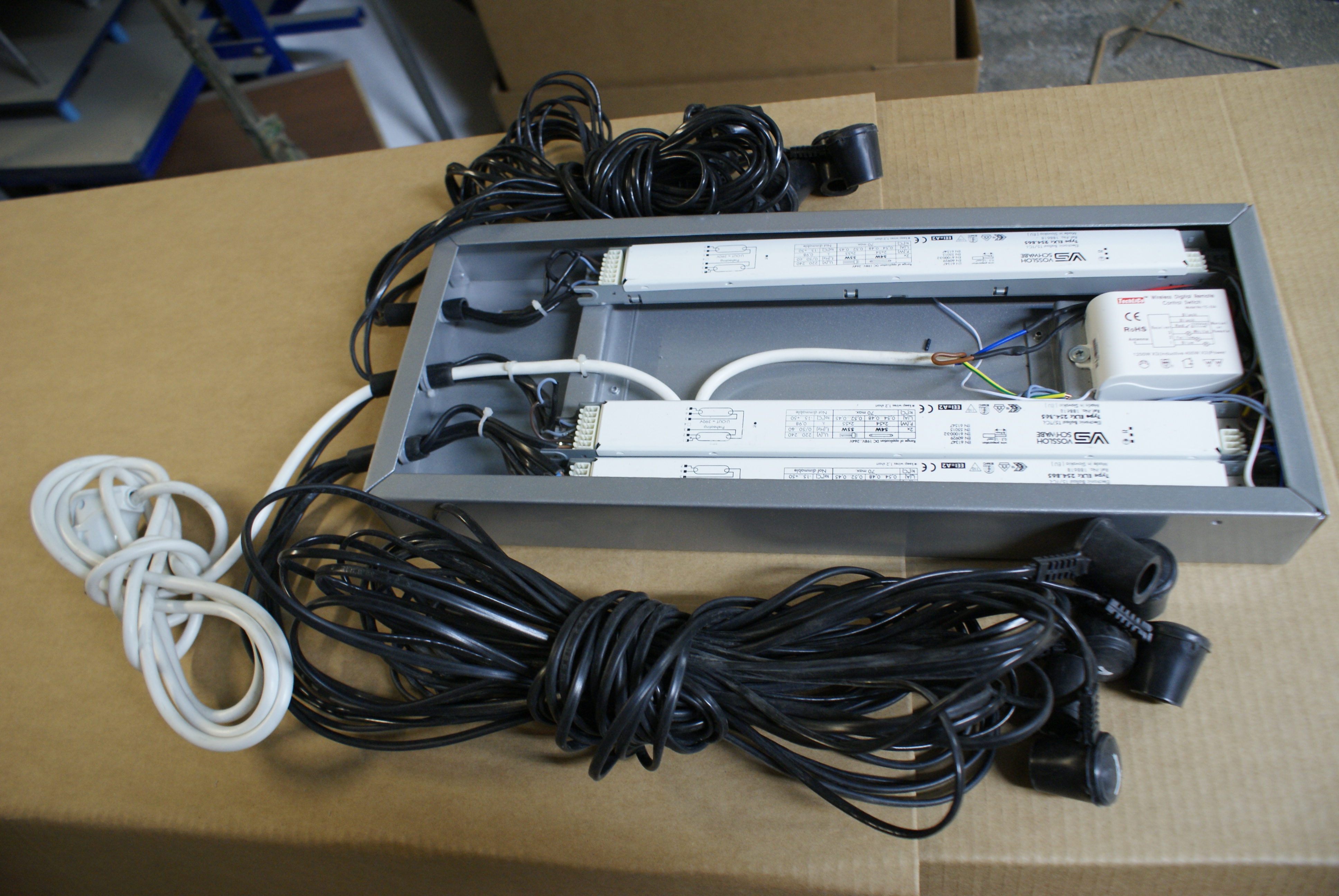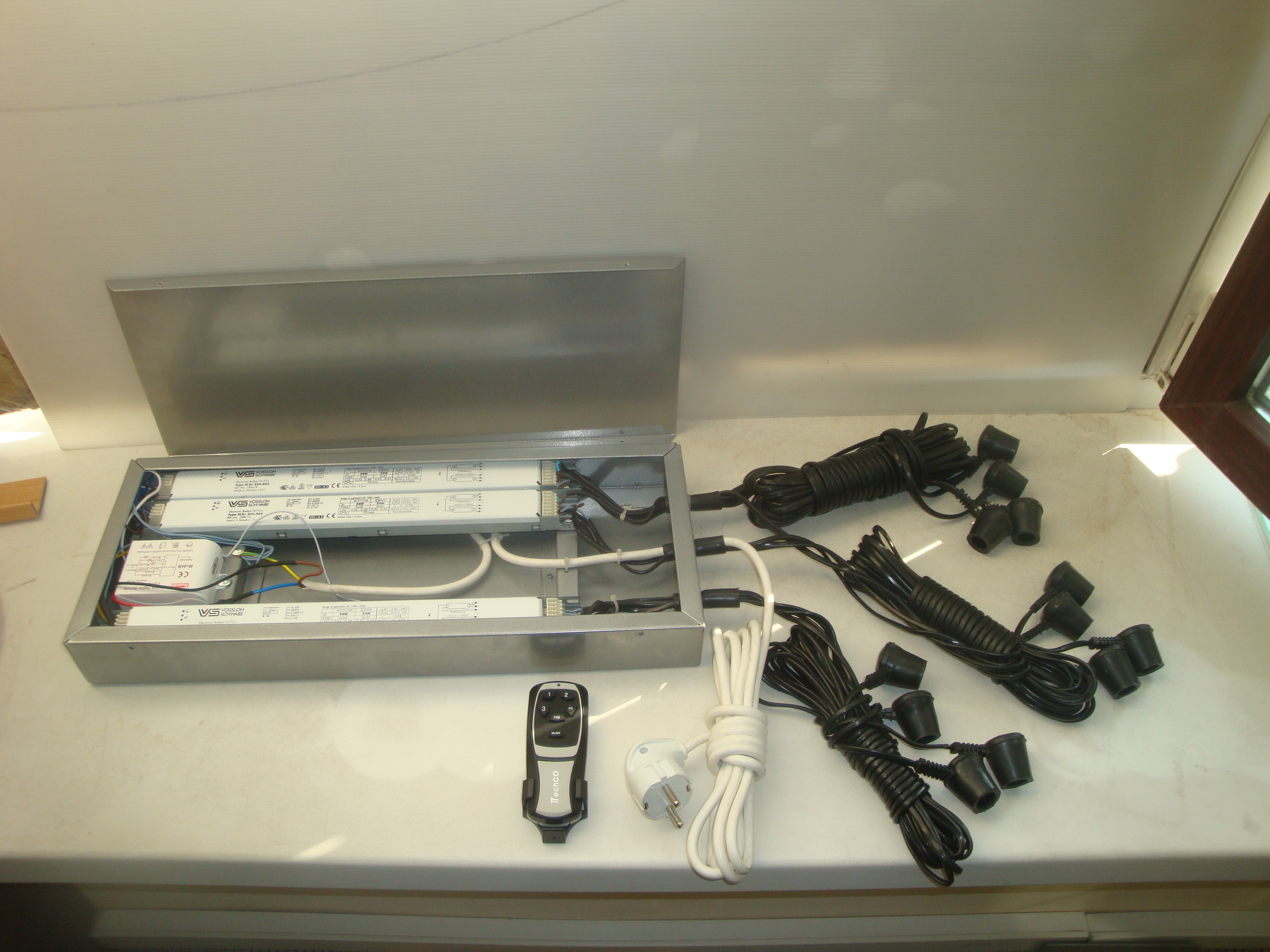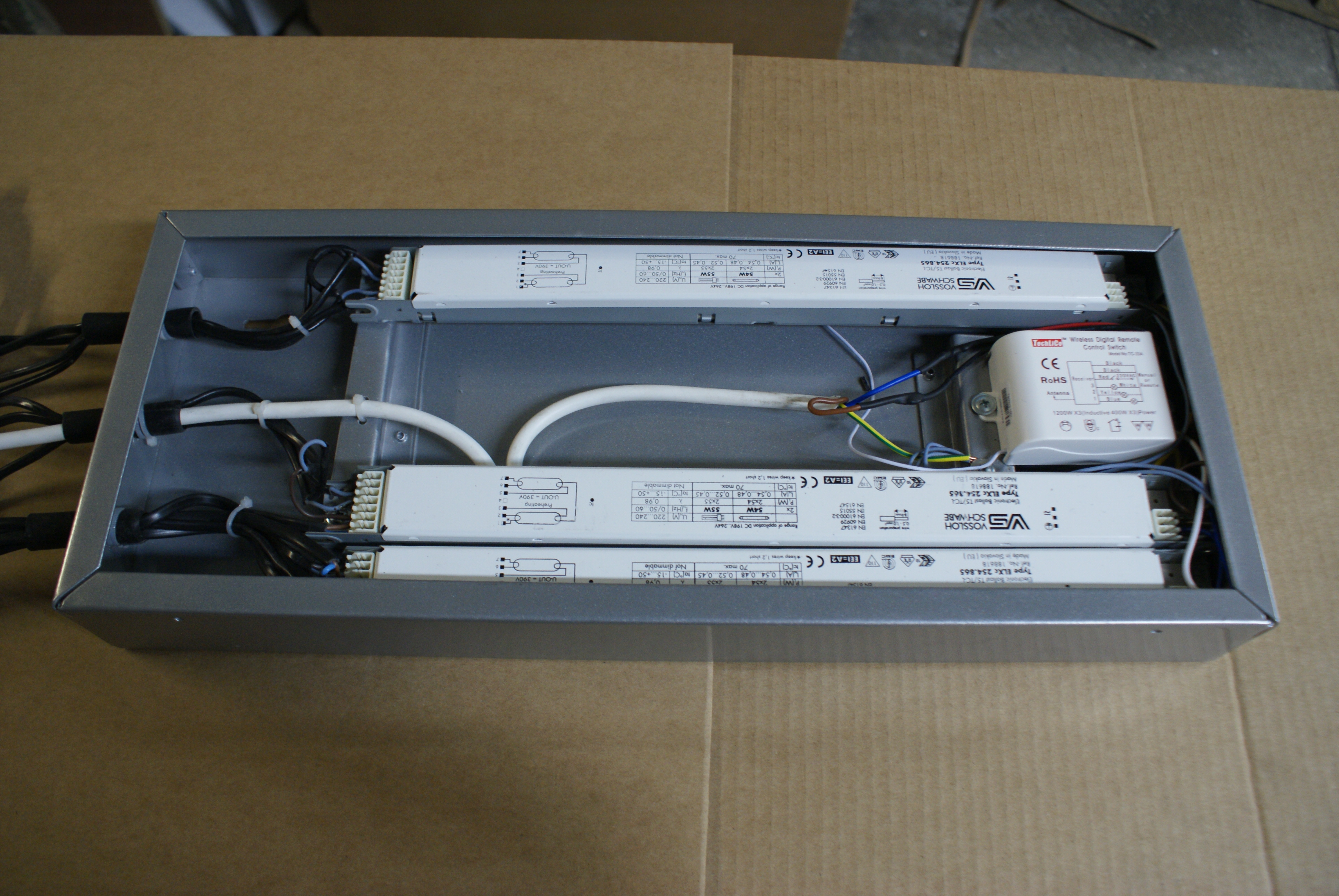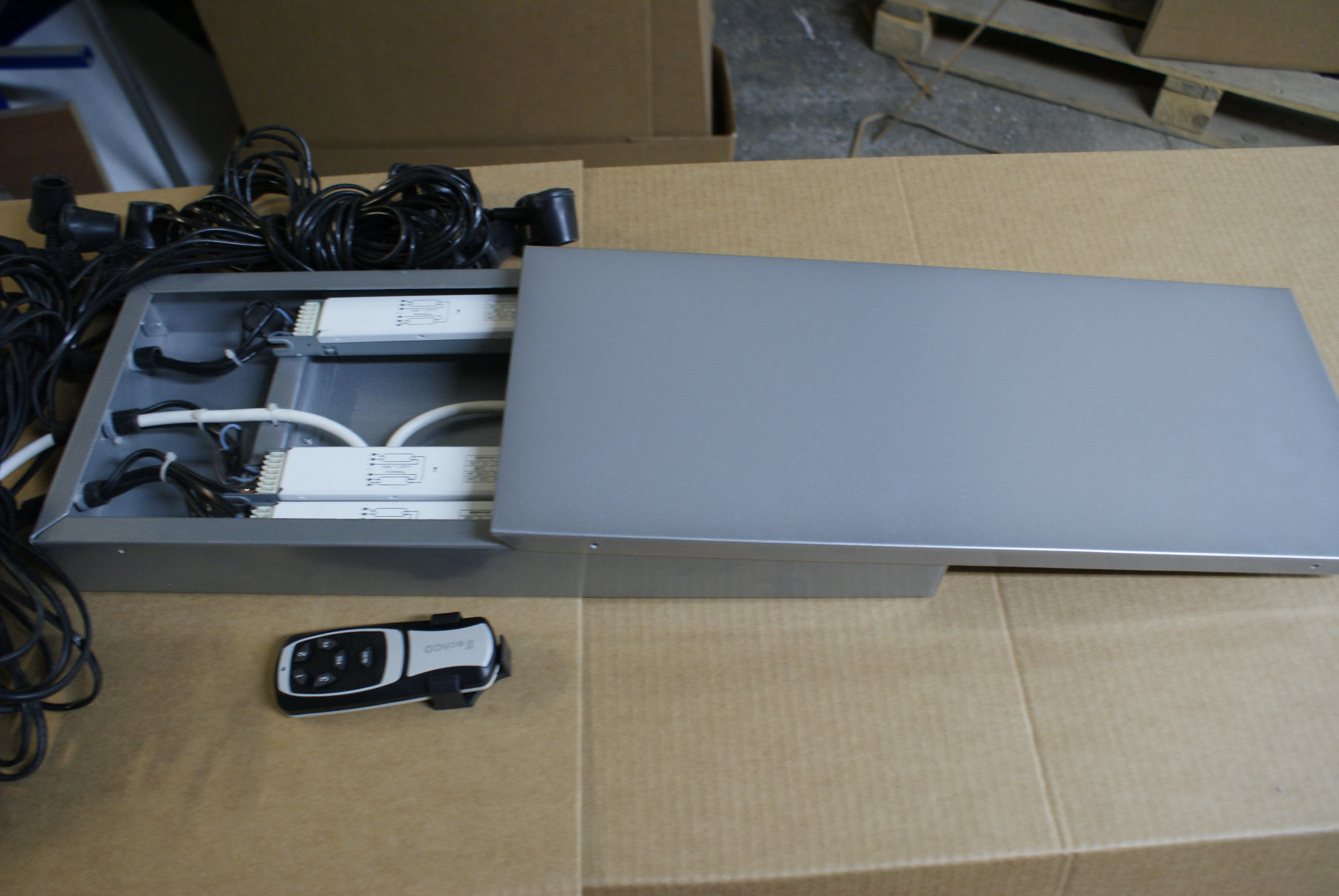 Блок управления для ламп (БЛУ) предназначен для подключения люминесцентных ламп Т5 (16 мм) или Т8 (26 мм) и регулировки яркости освещения. Блок состоит из алюминиевого корпуса с полимерным порошковым покрытием серого или черного цвета с установленным внутри электрооборудованием: ЭПРА (от 1 до 4 шт.) и от одно- до четырехпозиционного выключателя или коммутационного блока с пультом дистанционного управления, либо без него. Такая система может запускать от 2 до 8 ламп любой длины и мощности.