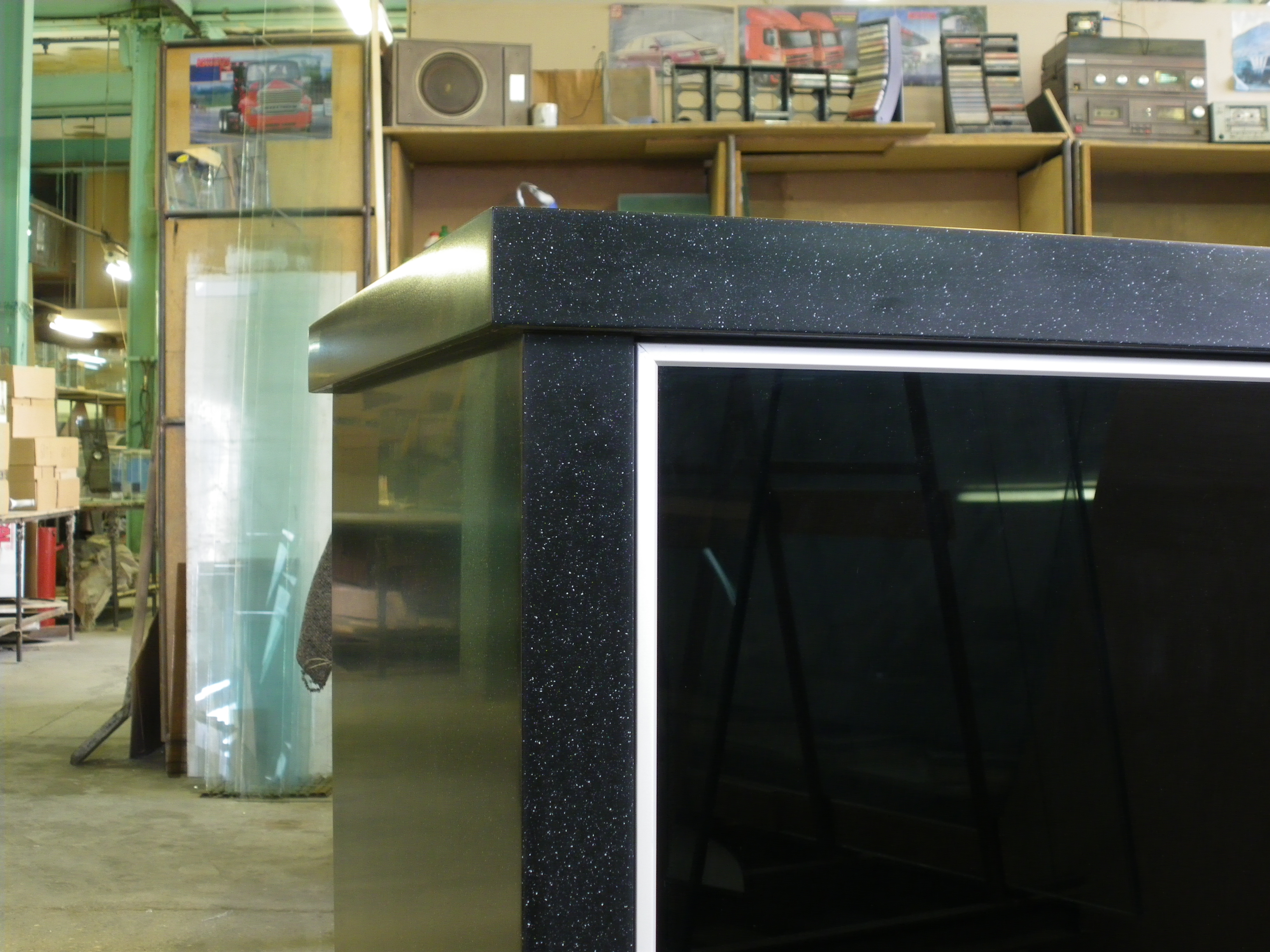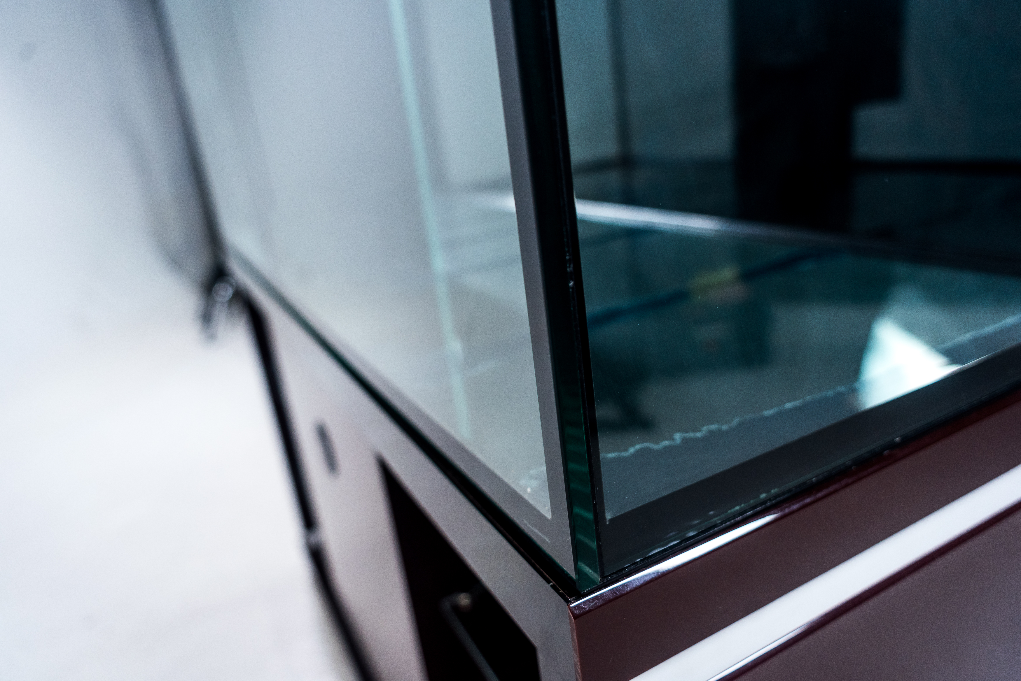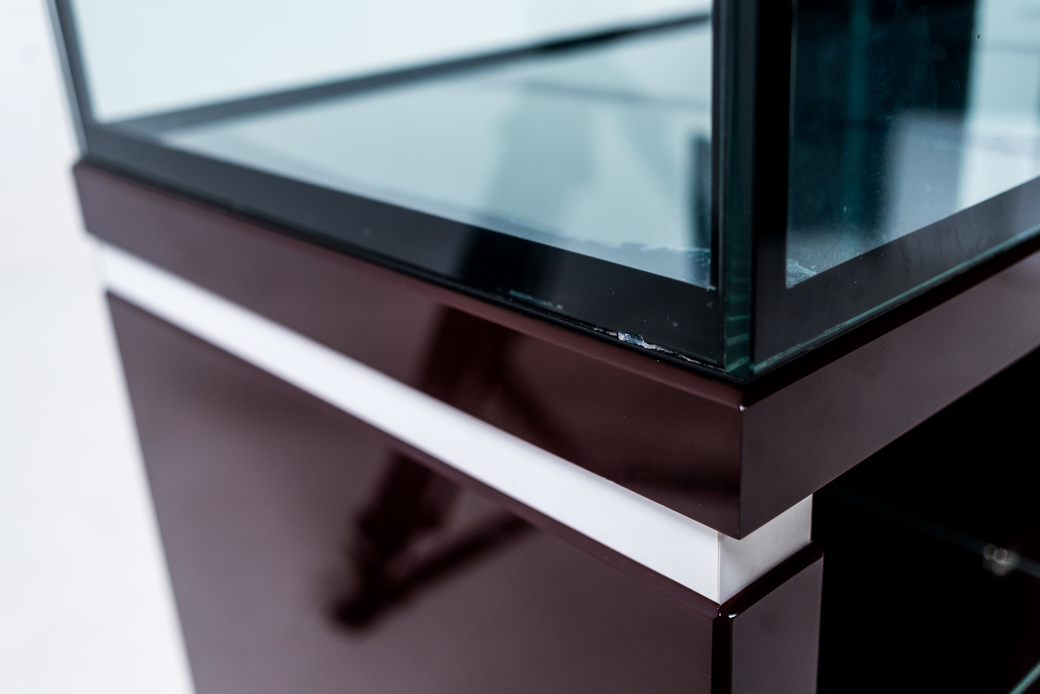В НАШЕЙ ЖЕ ЛИНЕЙКЕ ВСТРЕЧАЮТСЯ СТАНДАРТНЫЕ АКВАРИУМЫ С "ОТМАЗКОЙ". ЧАЩЕ ВСЕГО МЫ ПРЕДЛАГАЕМ ТАКОЙ ВАРИАНТ ОБРАБОТКИ ШВА В ОТДЕЛКА "ЛЮКС" АКРИЛОВЫЙ ПЛАСТИК, ГДЕ НИЖНЯЯ РАМКА СТОИТ ЗНАЧИТЕЛЬНО ДОРОЖЕ "ОТМАЗКИ", А ВЫГЛЯДИТ НИ ЧУТЬ НЕ ХУЖЕ.