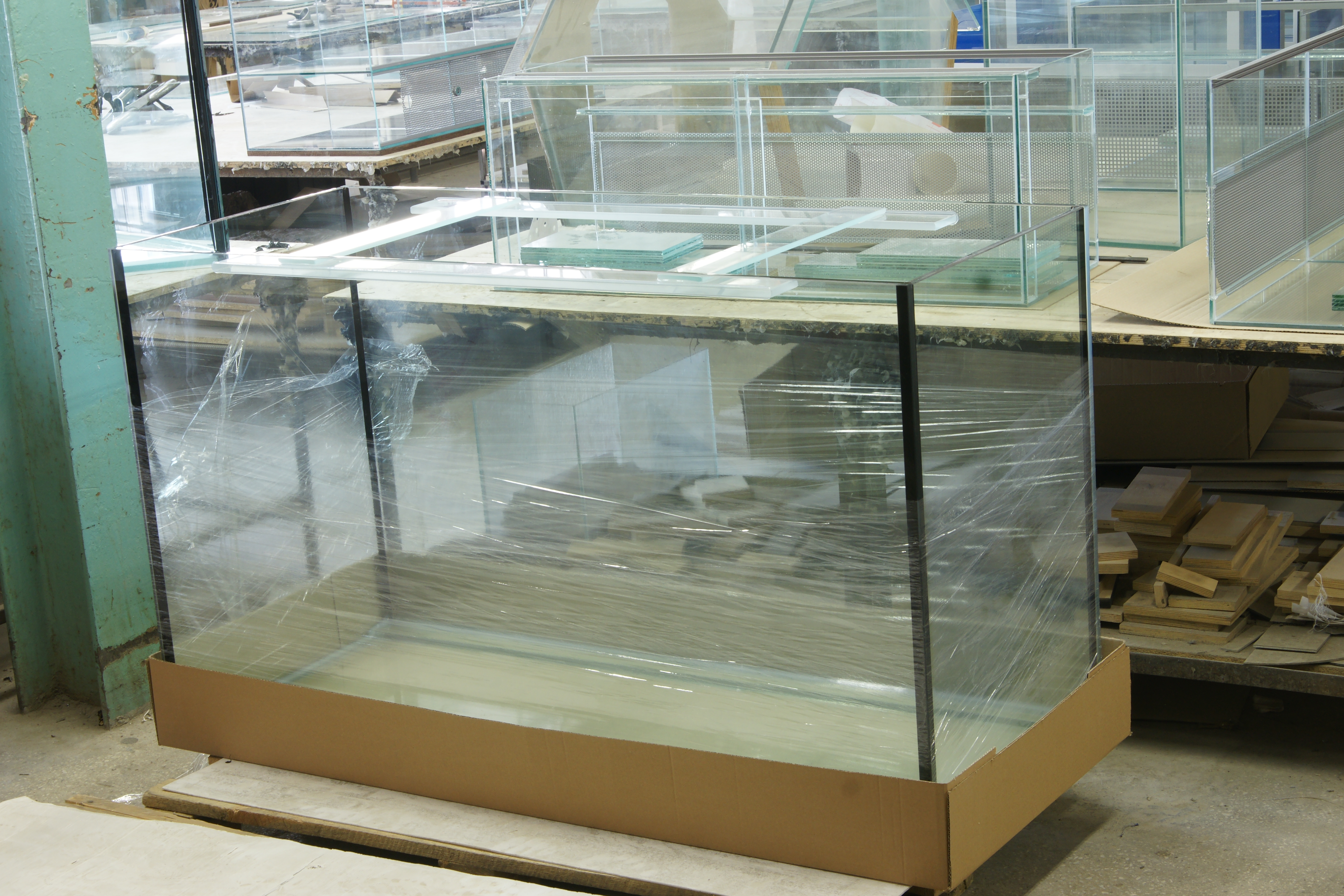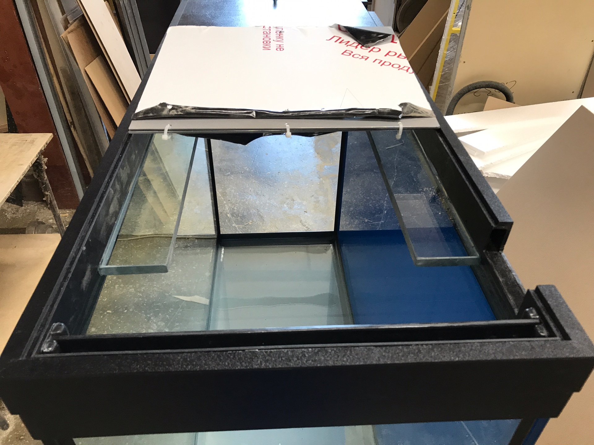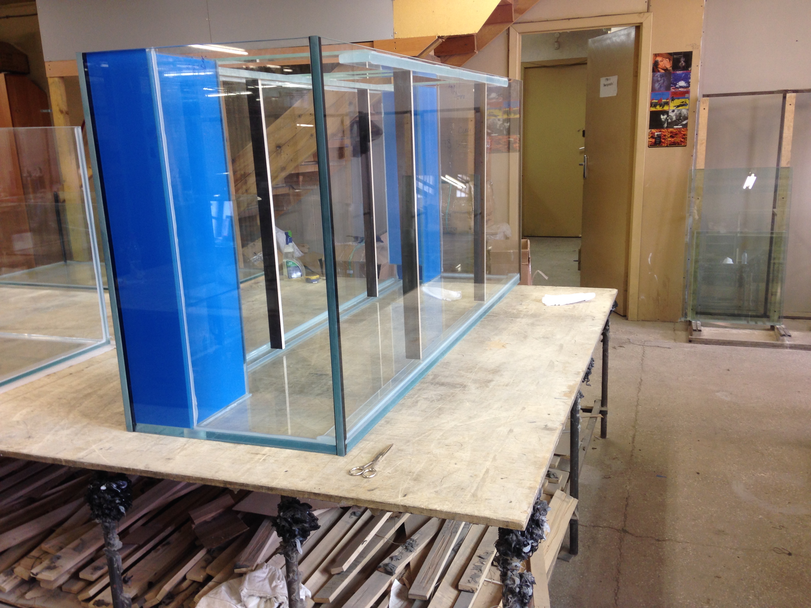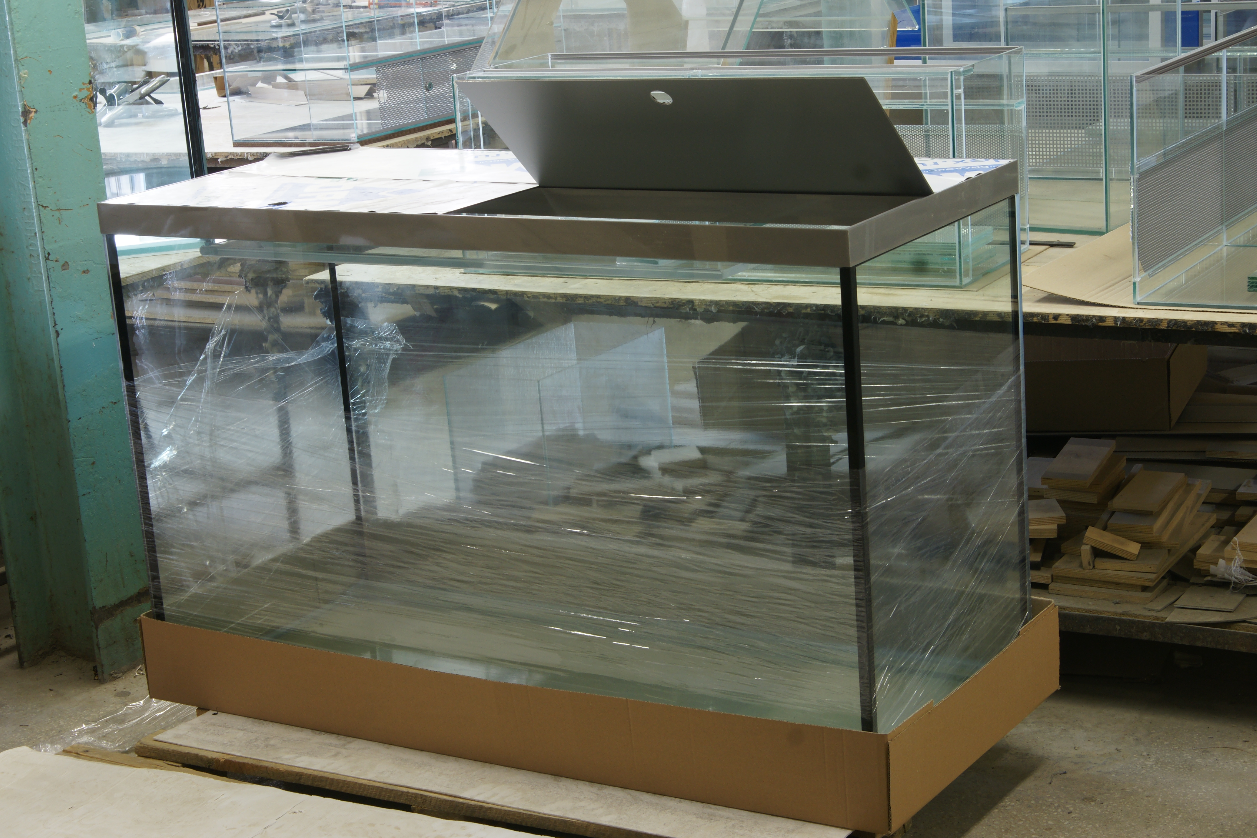 Для больших аквариумов и аквариумов с большой площадью дна (к примеру аквариум длина и ширина 2 метра) рекомендуем приклеивать фанерную столешницу ТОЛЩИНОЙ 15 мм.
