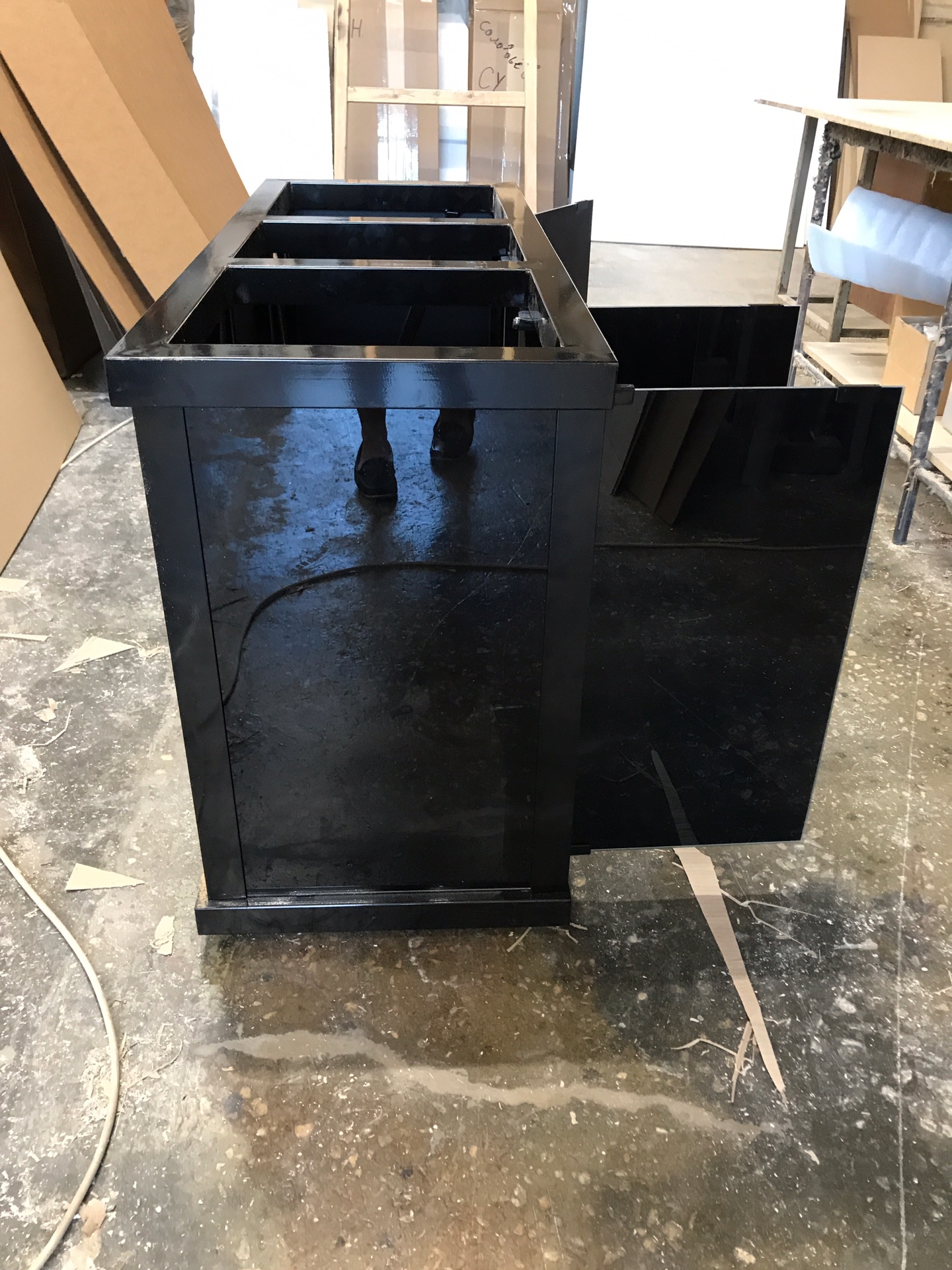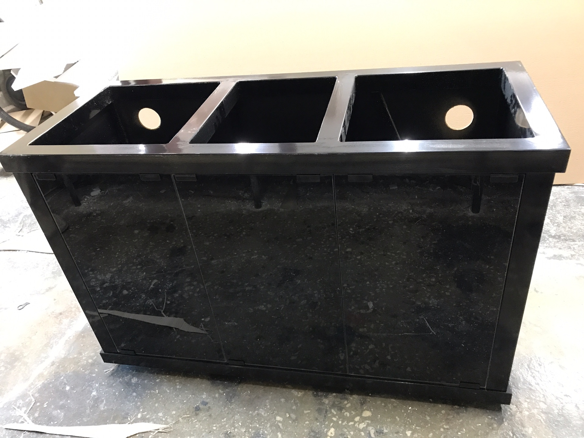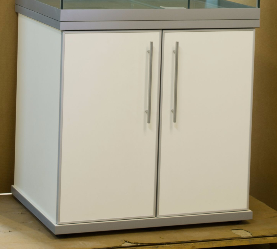 В нашей линейки мы используем два цвета: чёрный и серебро, но можно подобрать и другой вариант под заказ. Для такой тумбы можно подобрать как аквариум в отделке пластик абс, так и аквариум в отделке акриловый пластик.