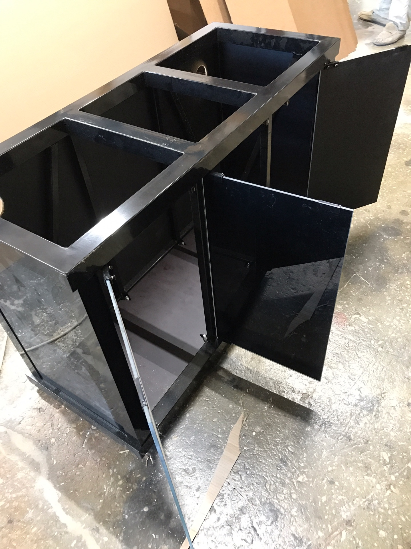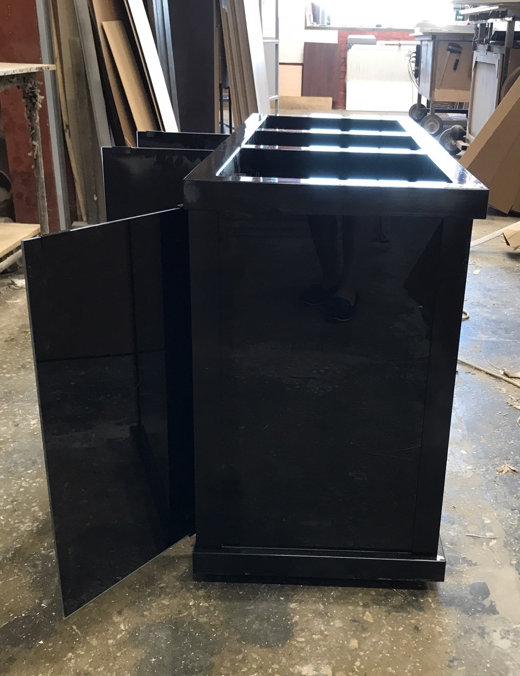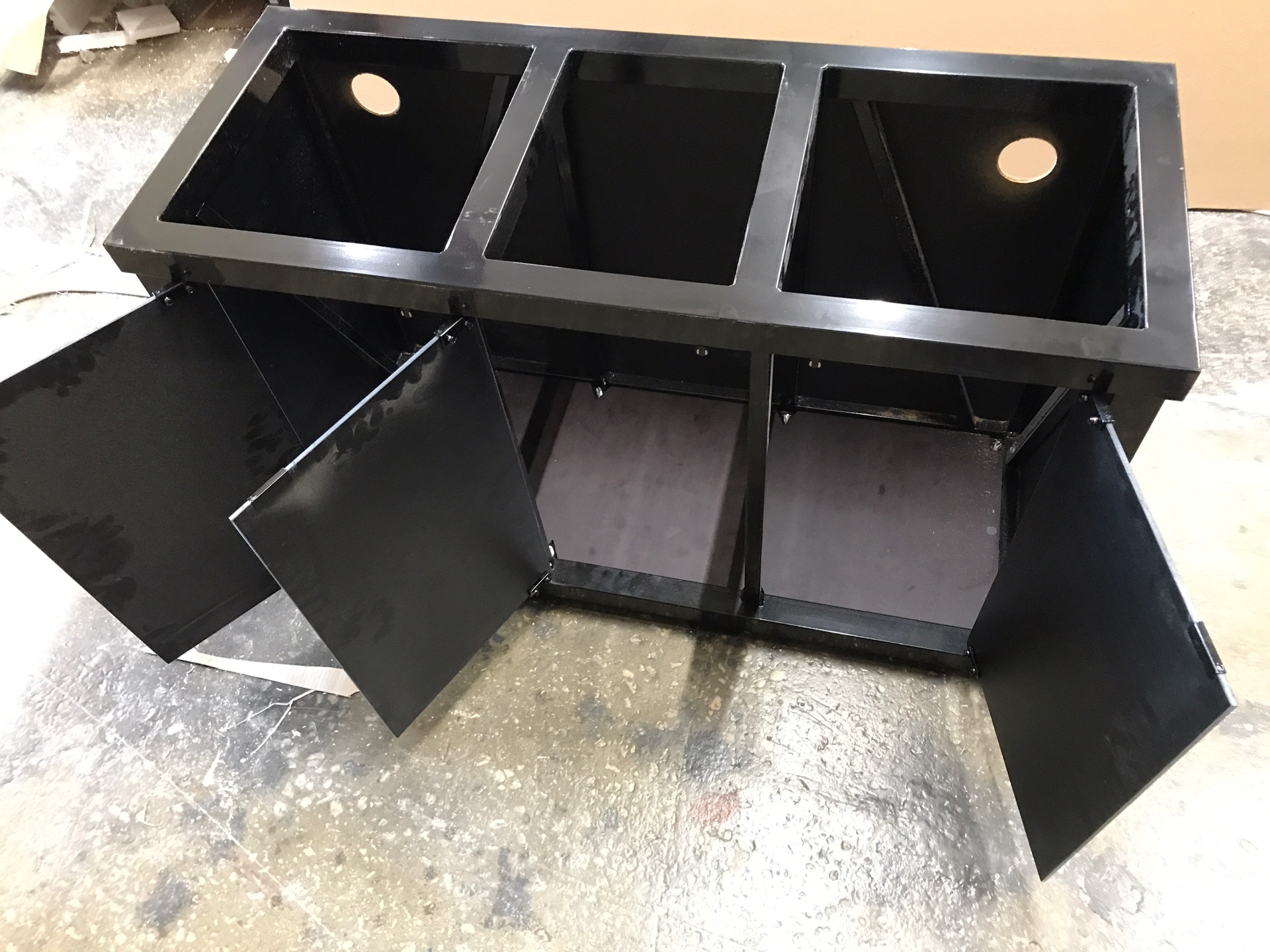 В нашей линейки мы используем два цвета: чёрный и серебро, но можно подобрать и другой вариант под заказ. Для такой тумбы можно подобрать как аквариум в отделке пластик абс, так и аквариум в отделке акриловый пластик.