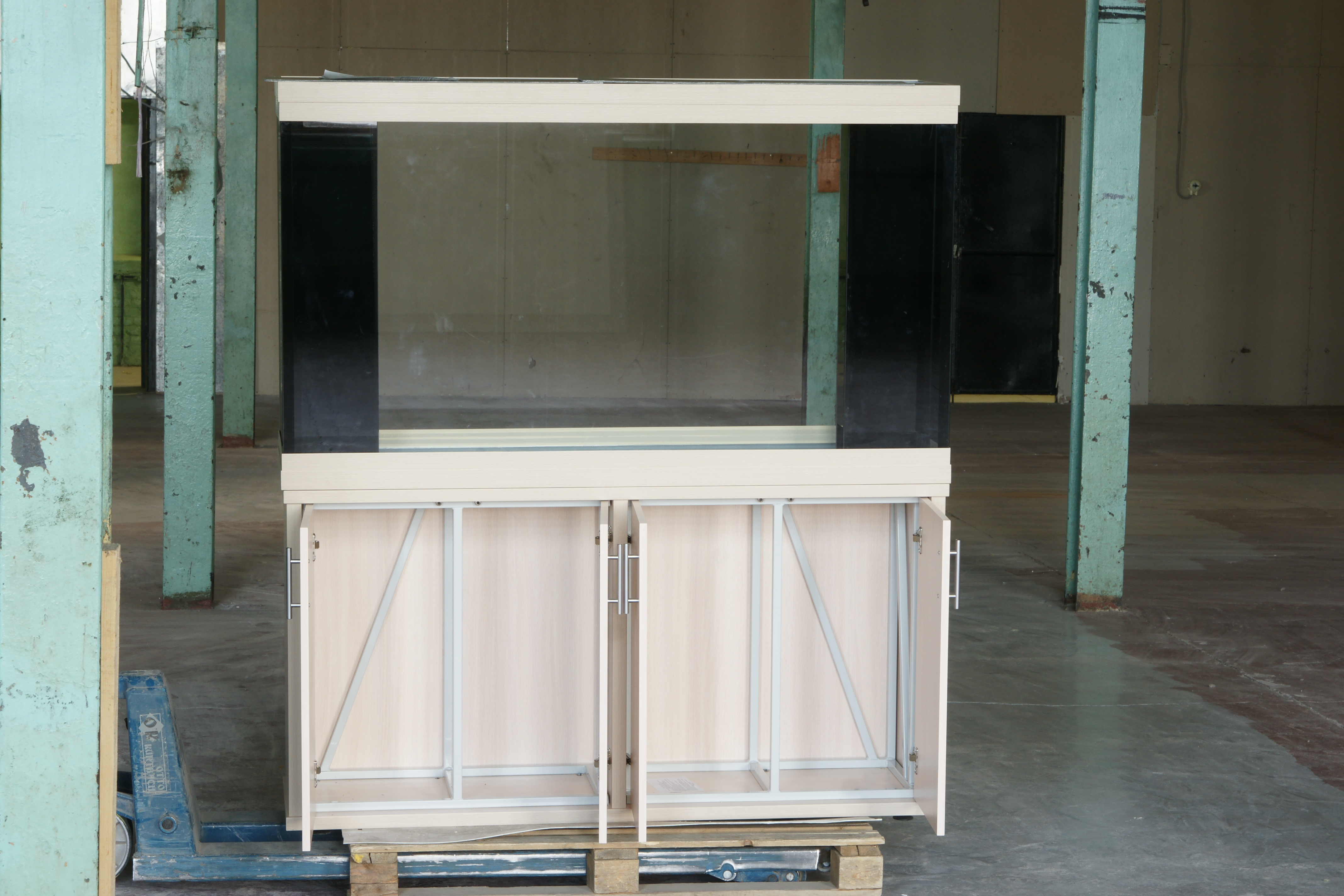 Изготавливаемые предприятием подставки-тумбы специально разработаны для аквариумов и обладают необходимой прочностью и устойчивостью. Подставки могут быть закрытыми (с дверцами) и открытыми. Изделия имеют различную конструкцию в зависимости от размеров и объёма аквариума. При массе аквариума свыше 150 килограммов (250 кг для ЛДСП 32 мм) в конструкцию вносятся дополнительные элементы жёсткости - перегородки или рёбра жёсткости; при массе аквариума свыше 400 килограммов (500 для ЛДСП 32 мм) внутри подставки-тумбы устанавливается металлический каркас.